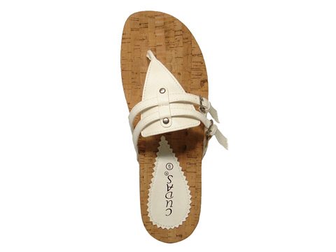 - Cork footbed two buckle thong.